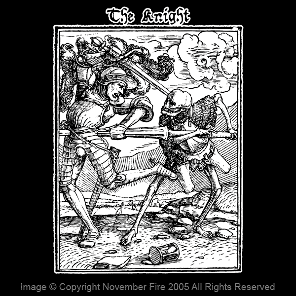 E’en in a moment shall they die, At midnight shall men quake with fear, The mighty shall not be pass’d by, Nor know who thrusts the fatal spear. The Dance of Death, 1538 Code:NFTDD003 |