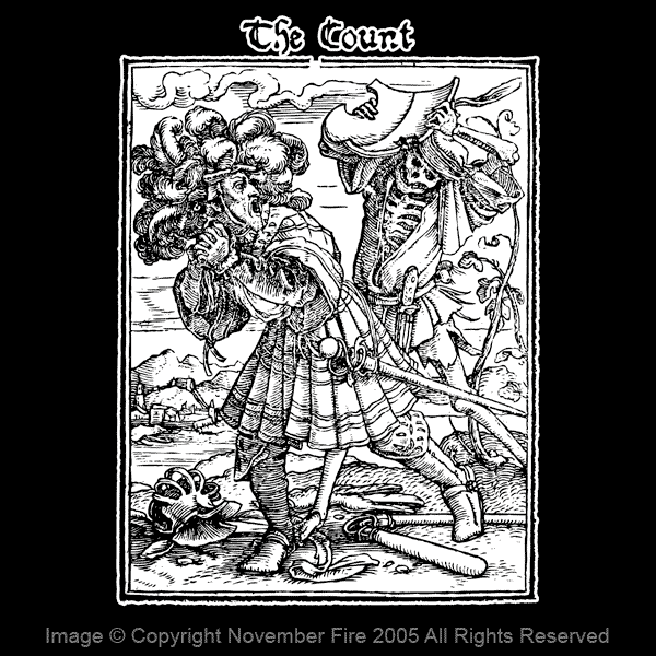 Baubles and earthly pomps for ever flown, Poor as the poorest he hath swiftly grown, Yet shall good deeds, if any hath done, Remain his glory after he is gone. The Dance of Death, 1538 Code:NFTDD004 |
