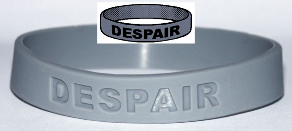 For the truly bleak of heart we present the despair wristband. To lose, give up, or be without hope. November Fires target audience, we still love you even if everybody else is a jerkoff.