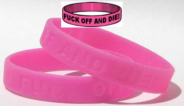Brought to you in pretty pink! Most folks are just going to assume that you are supporting some kind of feel good cause and you are! You are supporting your opinion of a choice few people that are on your shit list. This is the personal feel good wristband of all time!