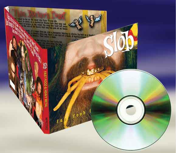 Slob, Fast Food and Heavy Metal Compact Disk Digipak. Featuring the songs and humorous stories of a day in the life of Slob.