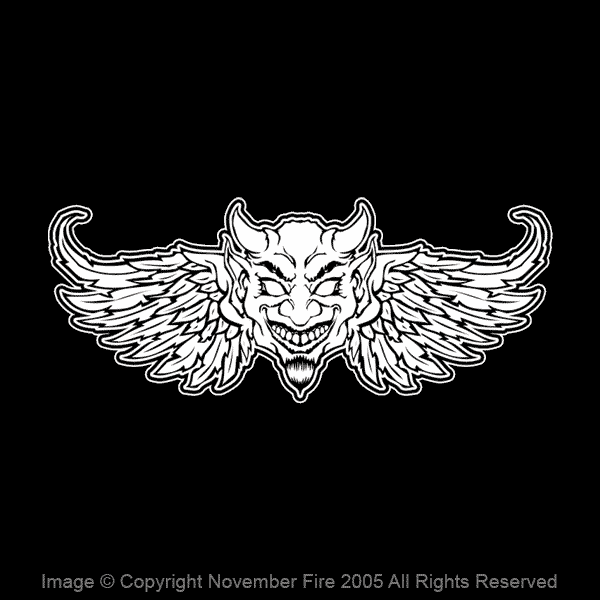 Elegant and sinister, this is a great design! Devil Wing is reminiscent of an old biker gang logo, but a little more gothic. We wanted something that brings the angelic to the demonic, a kind of spiritual Yin-Yang. You know the mood, you want to be nice but you just have to behave badly! You're a dirty, dirty person. You know you are.