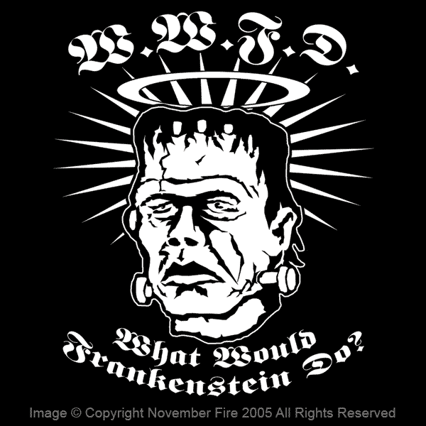 Just like other biblical characters, Frankenstein rose from the grave as well! So we had the question: What Would Frankenstein Do? You know like if someone insults you, you do like old Frank and smash them! And if little children come bearing pretty flowers, toss the brats into the lake! No need to think about it, just start going with your gut reaction; it’s what Frankenstein would do!