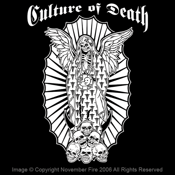 a term used in contemporary political discourse in the United States to describe certain positions that contrast with a Culture of Life. a term used in Colonial Europe to describe "barbaric" cultures which allegedly glorified or worshiped death. This was then used as a justification for the subjugation and colonization of these cultures. -Wikipedia Code:NFT088 |