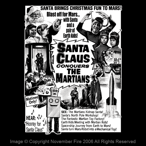 Martians, upset that their children have become obsessed with TV shows from Earth which extoll the virtues of Santa Claus, start an expedition to Earth to kidnap the one and only Santa. While on Earth, they kidnap two lively children that lead the group of Martians to the North Pole and Santa. The Martians then take Santa and the two children back to Mars with them. Voldar, a particularly grumpy Martian, attempts to do away with the children and Santa before they get to Mars, but their leader Lomas stops him. When they arrive on Mars, Santa, with the help of the two Earth children and a rather simple-minded Martian lackey, overcomes the Martians by bringing fun, happiness and Christmas cheer to the children of Mars.