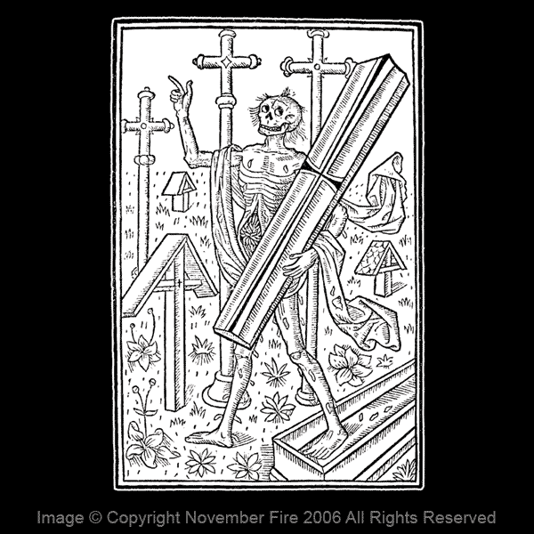 Allegoric representation of Death. From Le grant kalendrier et compost des Bergiers, printed by Nicolas le Rouge, Troyes, 1496.