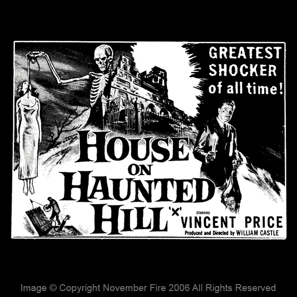 Eccentric millionaire Fredrick Loren and his 4th wife, Annabelle, have invited 5 people to the house on Haunted Hill for a "haunted House" party. Whoever will stay in the house for one night will earn ten thousand dollars each. As the night progresses, all the guests are trapped inside the house with ghosts, murderers, and other terrors.
