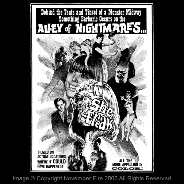 Claire Brennen stars as a waitress who leaves the greasy-diner business for the excitement of the carnival. She quickly discovers that she despises freaks and human oddities.