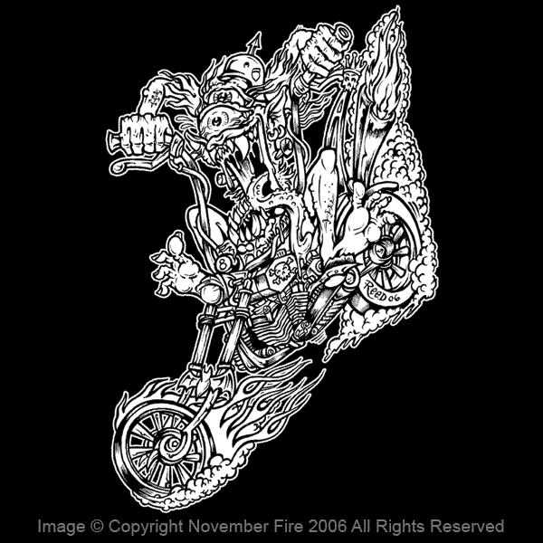 The beast is loose and he's gripping his ape hangers! 500 horse powered mad ass psychedelic madness sprinting straight to the edge of hell. Another tribute to the lowbrow art roots, and the king Big Daddy.