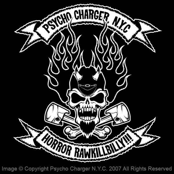 N.Y.C.'s Bloodiest band and the Bastard Sons of The King hisself, PSYCHO CHARGER, deliver an ultra-Horrific death-march thru the rotting R'n'R graveyard that's been described as "Horror Rawkillbilly"!!! Digging up influences from psychobilly, industrial, punk, surf, and gothic, these N.Y.C. psycho-rockers provide a horror-influenced, mutant cross-bred psycho-industrial-rawk assault that kicks and flails like a pissed-off two-headed bastard child at a family reunion!!! This is truly evil heavy-twang hell rock from the righteous side of the Devil's trailer park!!!