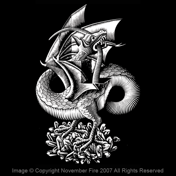 This wyvern dragon is inspired by one of the incredible woodcuts of M C Escher.