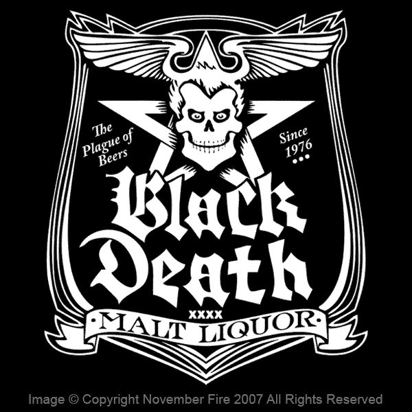 Dr. Johnny Fever from WKRP in Cincinnati's favorite drink! You might catch him wearing this same shirt while he is spinning records and saying booger! Killer retro design and a great product, Black Death Malt Liquor rules!