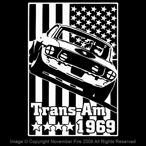 We dig a bit of racing at the November Fire compound and have been toying with racing designs for a while. This is a killer retro design from the 1969 Trans-Am Series. Whether your into classic muscle car racing or just dig the far out star spangled graphics, it is a great shirt.