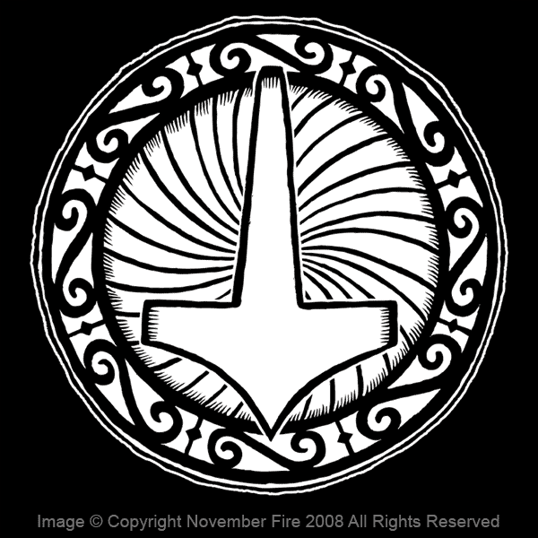 Mjolnir is Thor's Hammer. This ancient Norse symbol is a stylized representation of the legendary magical weapon of the Norse god Thor. "Mjolnir" means "lightning," and symbolizes the god's power over thunder and lightning. We also offer a more detailed Thor's Hammer, NFT074.