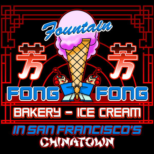 Part of our remembering San Francisco series of shirts. The Fong-Fong Bakery-Fountain Opened in 1935 eventually had 2 locations and was a beloved business in Chinatown.