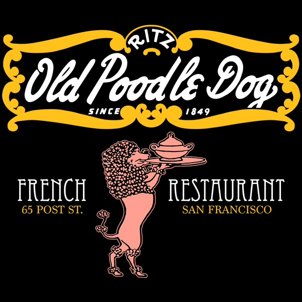 Part of our remembering San Francisco series of shirts. The Poodle Dog restaurant opened in 1849 one of San Franciscos first, certainly its most famous French restaurant.