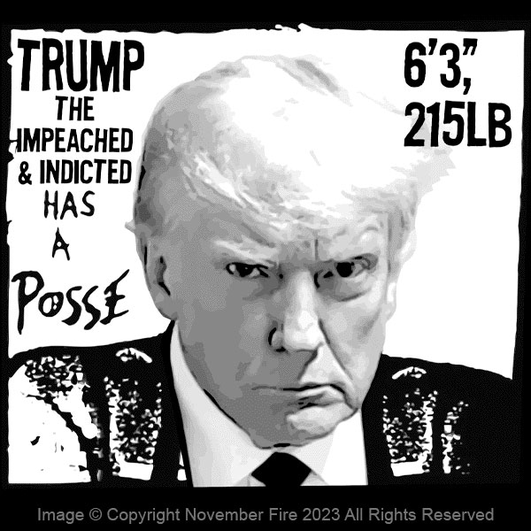Well it happened and we can all now accept what a six foot three inch two hundred and fifteen pound Impeached and Indicted former president looks like in a mugshot. But be certain that Trump has a Posse.